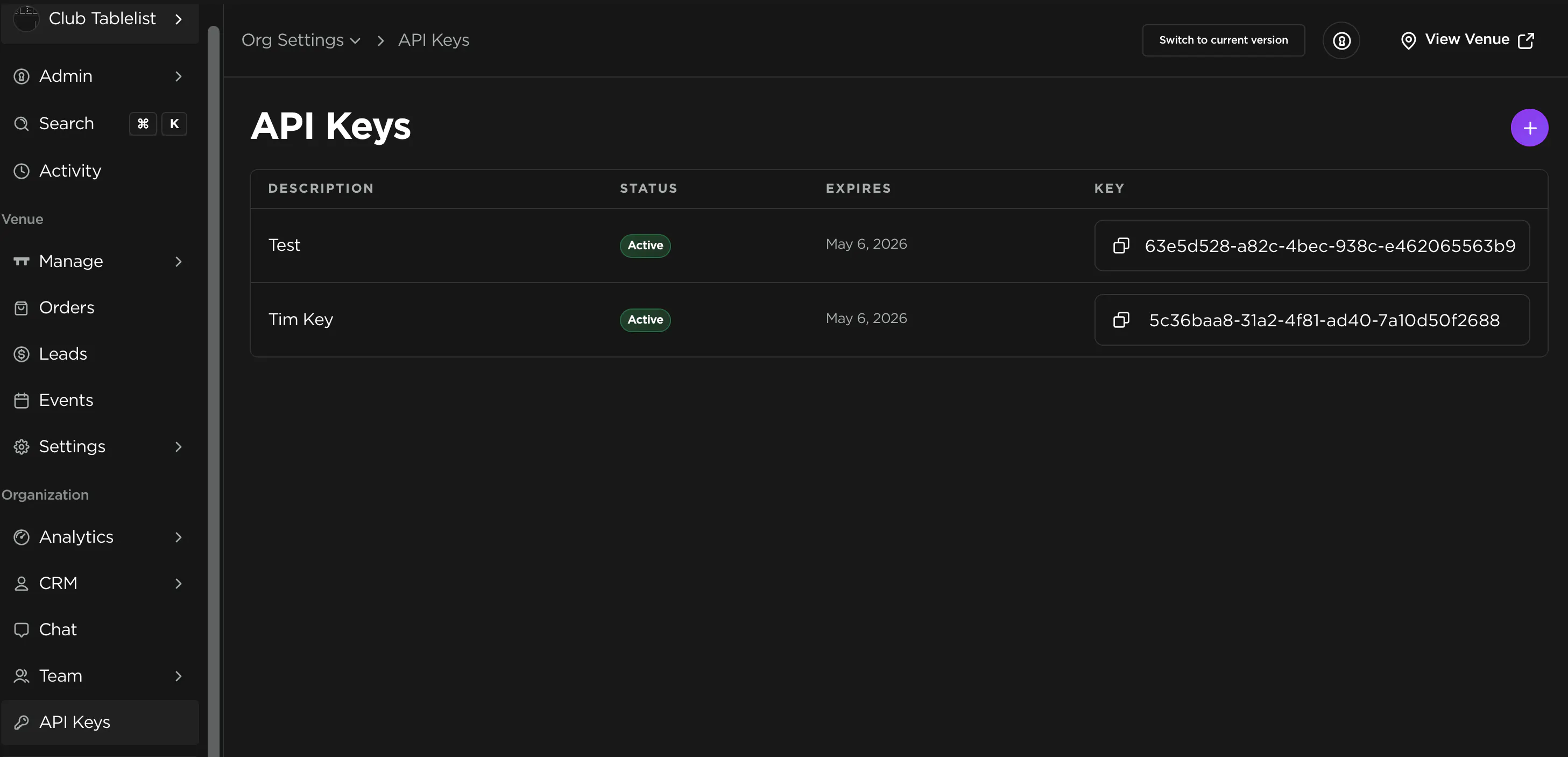 API Keys: